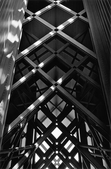The striking feature of the design is the "disconnected connectors," a network of crisscrossing bracings that span the ceiling. At the heart of this complicated feature is a simple pattern. Through the seemingly unending repetition and variation of this simple pattern arises a complex network, which is entirely abstract yet recalls the organic and natural world. It reminded me of Bach’s music, and that we are part of a larger whole.