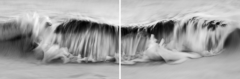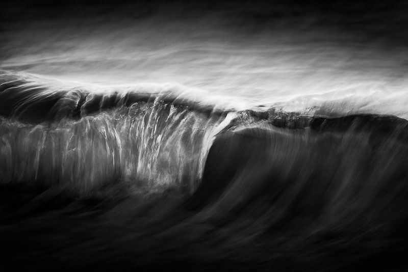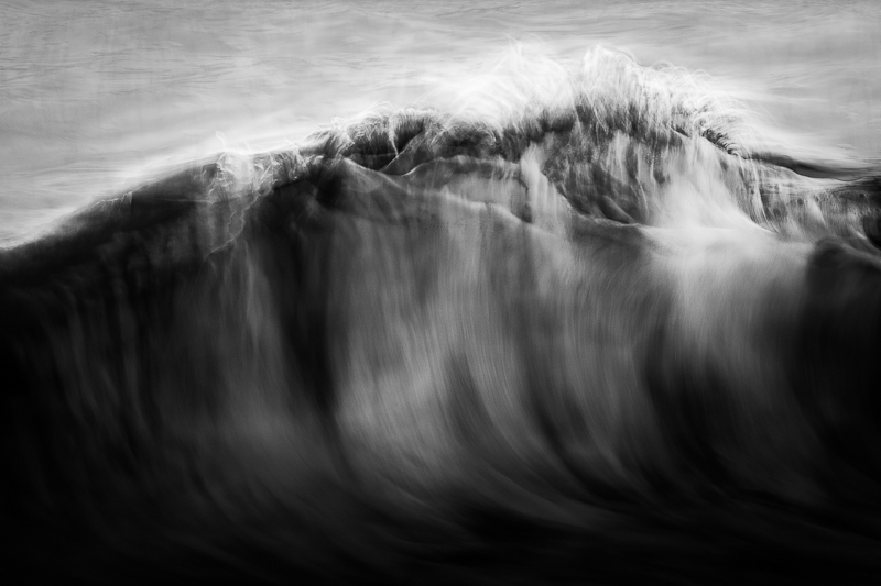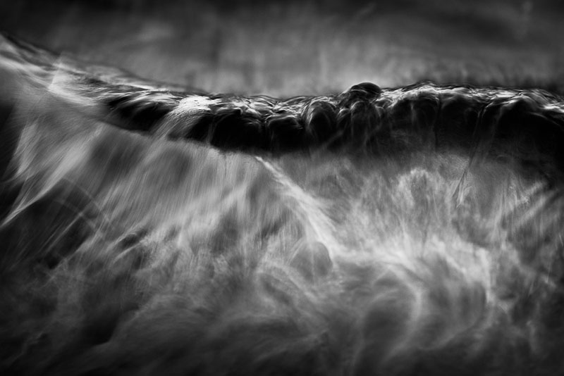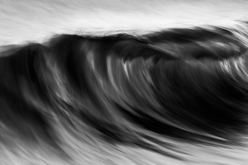 The Sea Inside is my subjective exploration of the energy of moving water. The series relies on abstraction and rich monochromatic palette to express the most elemental aspects of this great natural force. These photographs are made in the tradition of expressionist photography. While the images are captured with a camera, the prints are imbued with my own imprint, my own thoughts and emotional maps. Ocean waves are untamable, but I expressed them on paper as if I could somehow calm them, slow them to a crawl, and step inside to touch the essence of this force.